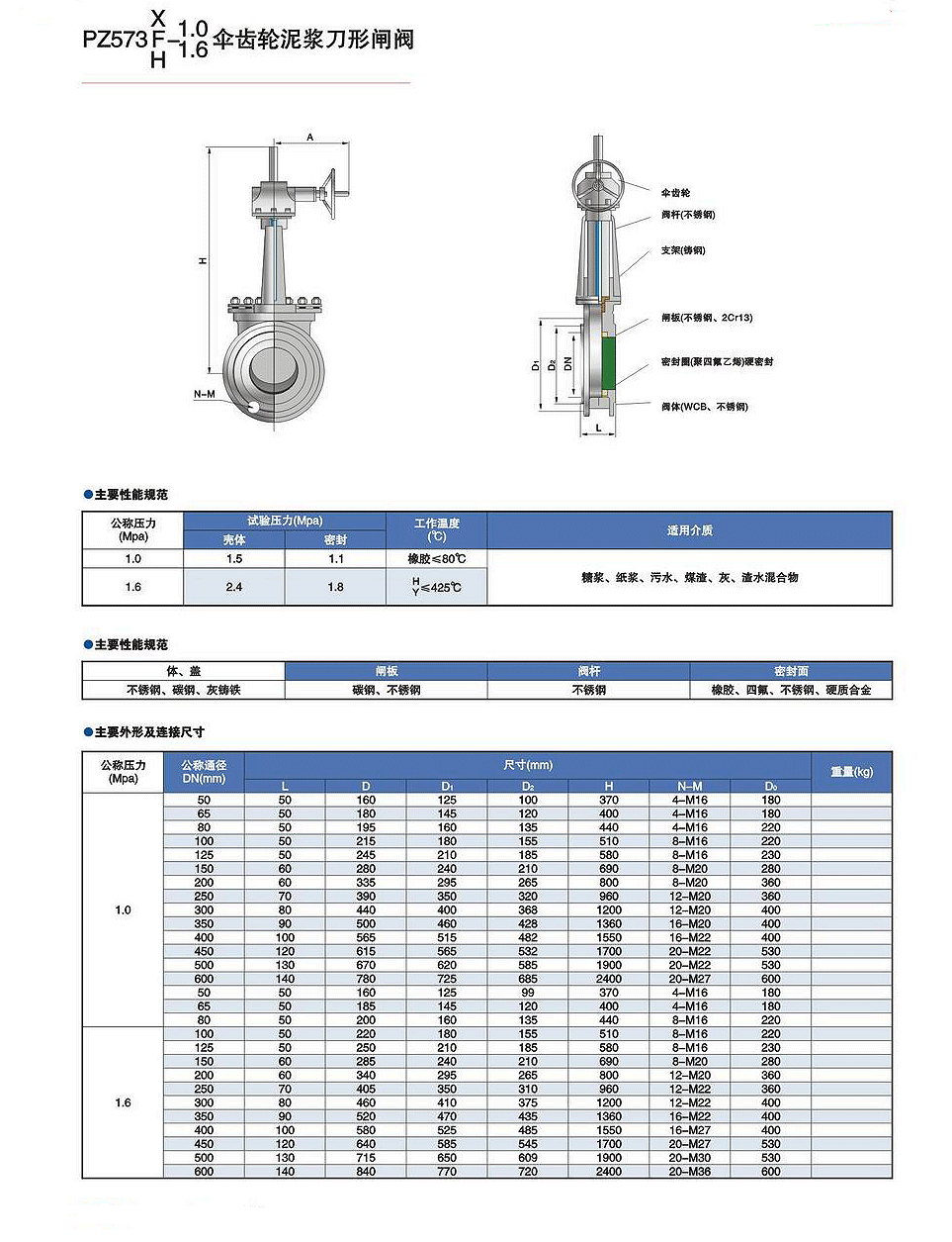 PZ573X/F/H 伞齿轮泥浆刀形闸阀