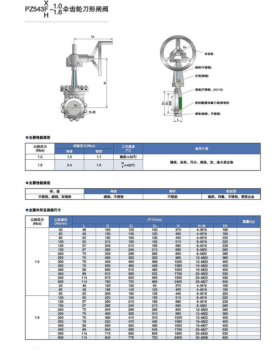 >> PZ543X/F/H伞齿轮刀形闸阀