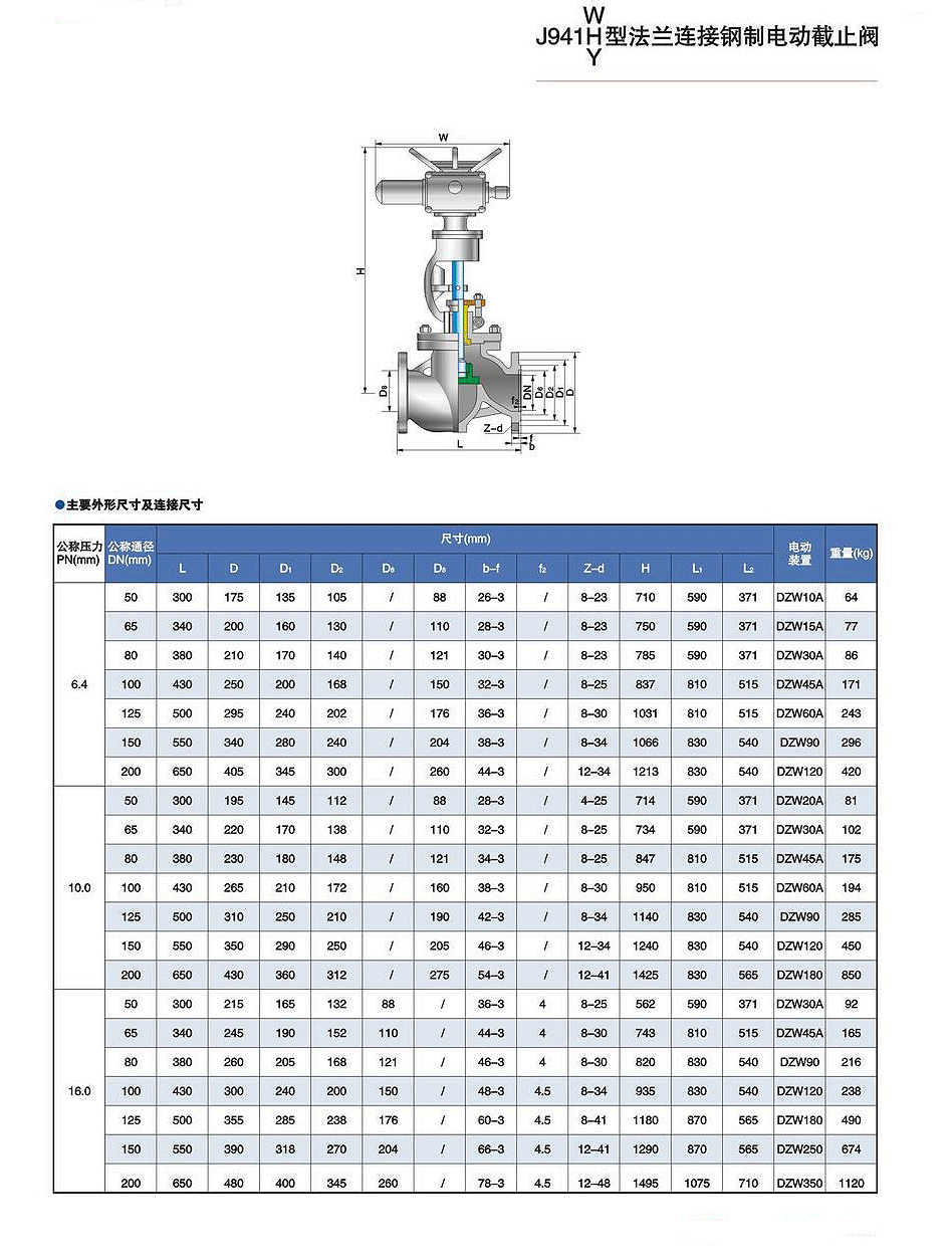 J941W/H/Y法兰连接钢制电动截止阀