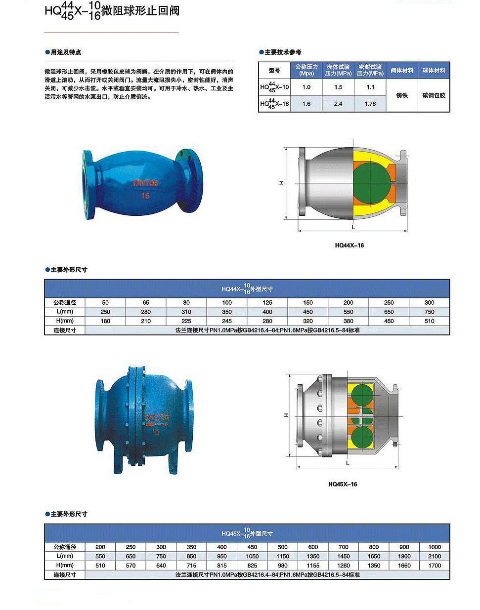 >> HQ44/45X-10 16微阻球形止回阀