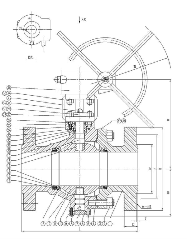 三、固定蜗轮球阀规格主要尺寸: