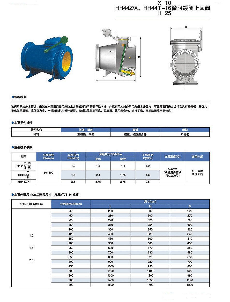 >> HH44Z/X HH44X/T/H- 10 16 25微阻缓闭止回阀