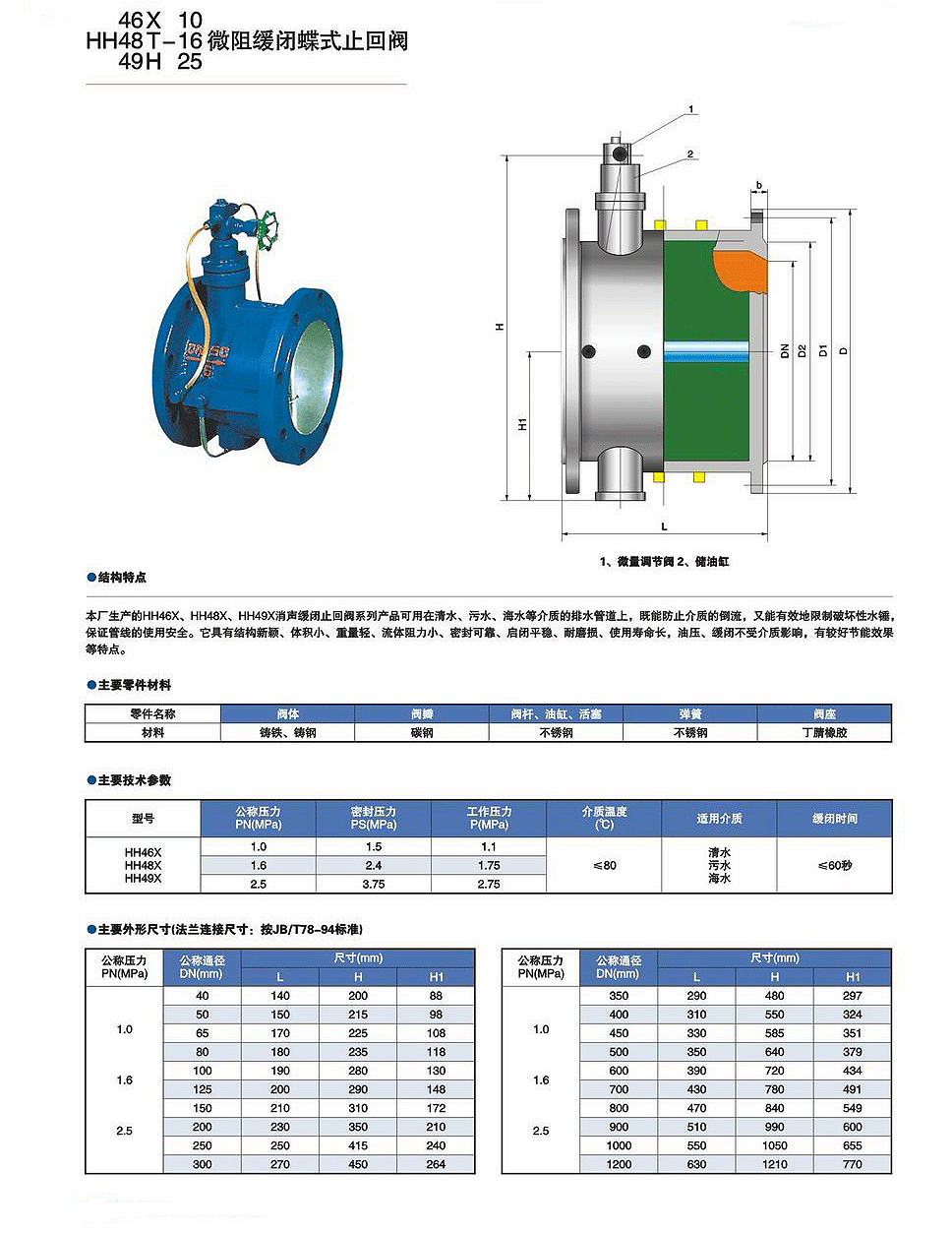 >> HH46X 48T 49H-10 16 25微阻缓闭碟式止回阀