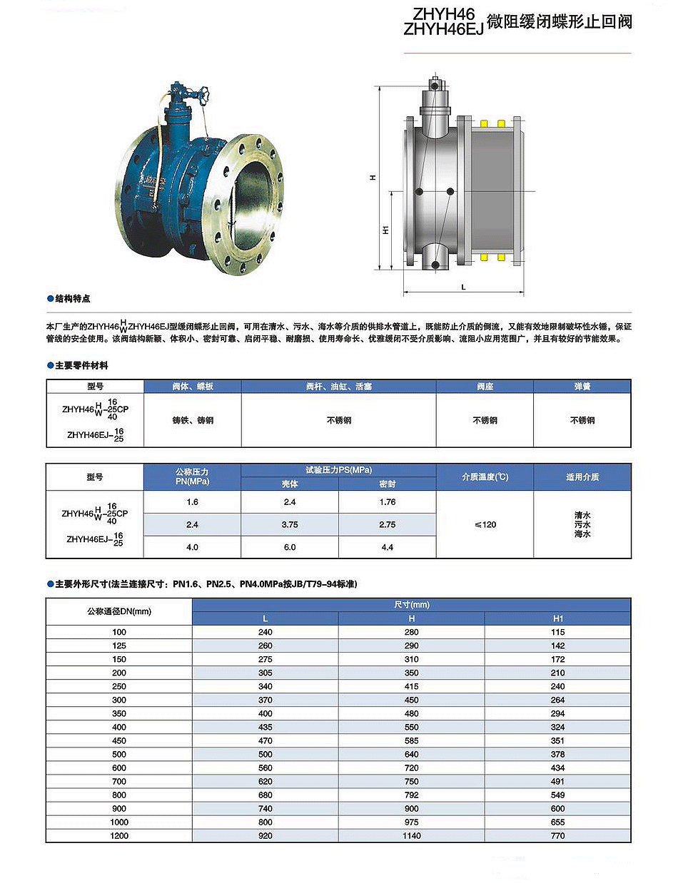 ZHYH46(EJ)微阻缓闭碟式止回阀