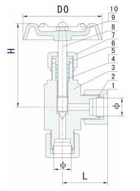 3. 结构特征: 锥面或球面密封,直角式